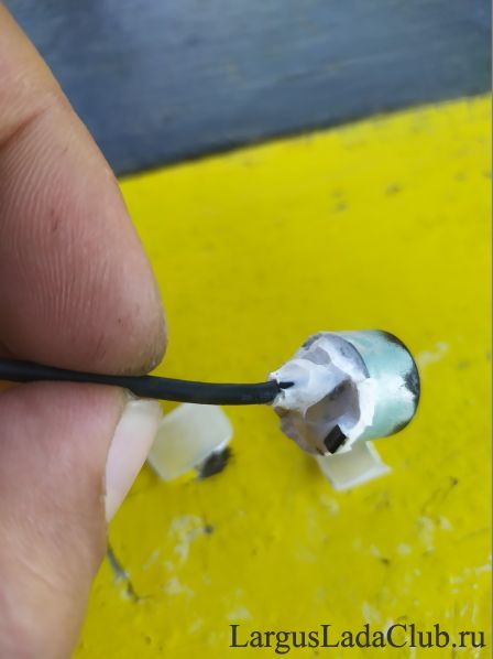 В китайском датчике, элемент высовывается не вовнутрь, а наружу. Т.к. корпус датчика не разборный. И он так же залит герметиком. И что бы не оторвать провода от элемента, толкая его наружу, я решил его просто аккуратно кусачками почикать.