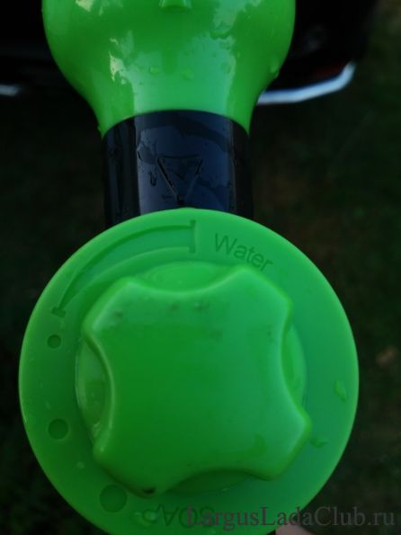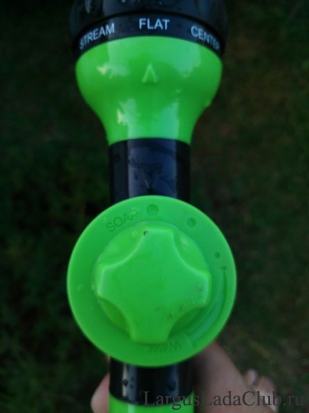 Откручиваем колбу (я это делаю заранее, перед началом мойки) и наливаю нужное количество автошампуня. Крутим в режим - Soap (мыло, шампунь):