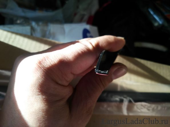 Хотел бы немного прояснить ситуацию по данным резинкам. Данные резинки идут длинные с закругленными концами. По моей прикидке, данные резинки можно одним концом приложить к пластиковой черной накладке (внизу стекла, у крыла), а второй конец завести на саму крышу и приклеить к ней! Но мне как-то не особо хотелось этого делать, и я укоротил данные резинки. Вымерил необходимую мне длину и под прямым углом обрезал. Вот этим прямым срезом и прижал к черной пластмассовой накладке внизу стекла. Верх резинки выравнял с верхней уплотнительной резинкой! Ниже по фото увидите!