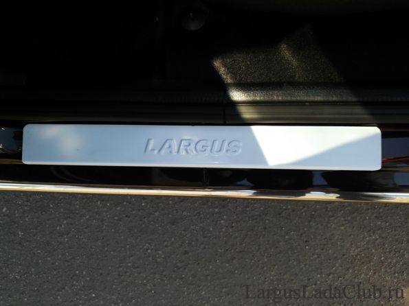 Вчера снова удалось выкроить немного свободного времени и посвятить его установке накладок на пороги своего железного коня. Данный комплект накладок я заказывал в клубном магазине. Комплект состоит из 4 одинаковых накладок с выштамповкой "LARGUS". Заказывал данный комплект из-за необходимости задних накладок, передние идут заводские "LADA".