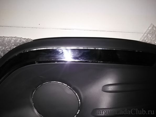 Хотел бы обратить внимание на крепление заглушки. Данные усики будут упираться в стекло ПТФ, поэтому я их срезал заподлицо. Да и на стоковых облицовках их нет.