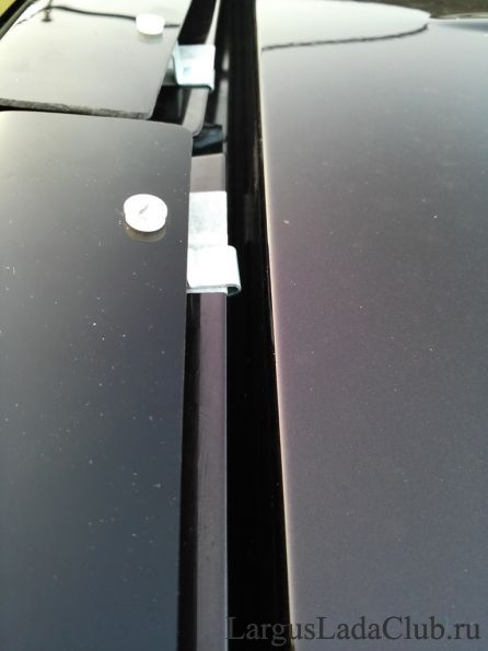 Так же есть проблема с остальными кронштейнами-скобами. Данные кронштейны-скобы имеют равномерный изгиб-зацеп за кромку задней двери. Но тут же возникает проблема. В некоторых местах они садятся плотно и ровно, а в некоторых местах их нужно больше разгибать, так как на внутренней стороне кромки двери под лакокрасочным покрытием нанесен заводской шов герметика. Хоть их и разгибаешь, но у основания из не разогнешь, жесткость и радиус сгиба не позволят их разогнуть, так как нужно, и поэтому их придется задавливать,что бы они плотно сидели и держались за кромку двери, а это так же может привести к повреждению лакокрасочного покрытия!