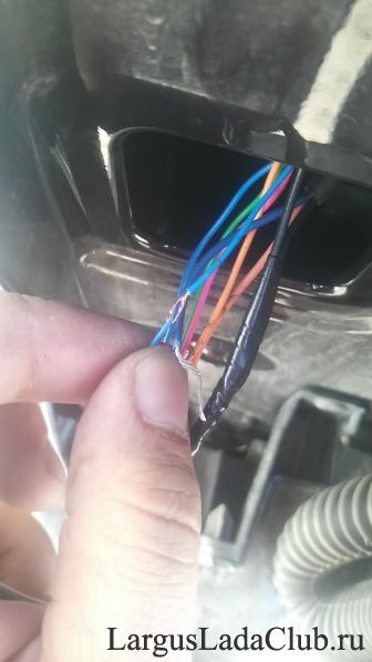 Раздвигаем провода приблизительно на пополам вставляем нужный провод (по цвету) от доп.фонарей и закручиваем по кругу (кто хочет по часовой стрелке, кто против;) и изолируем: