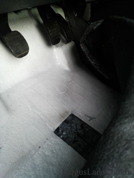 Но вот сменив один водительский коврик, который растянулся и протерся именно в этом месте. И постелив новый ковер, стал замечать все большую и большую просадку пола. Да и новых ковров стало жалко. Последующее латание водительского ковра, не выход из ситуации.