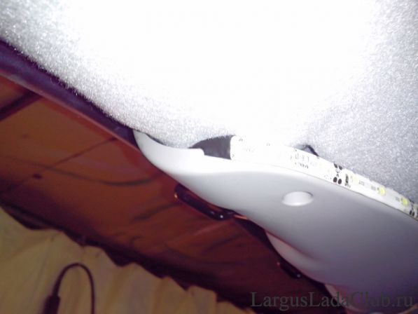 При установке в этом месте, свет не будет слепить глаза при пользовании багажника, да и повредить подсветку транспортируемым грузом будет затруднительно, опять же проводку удобно без палева провести!