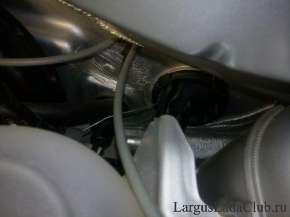 Откручиваем пластиковую накладку стоки дверей и кидаем кабель к багажнику: