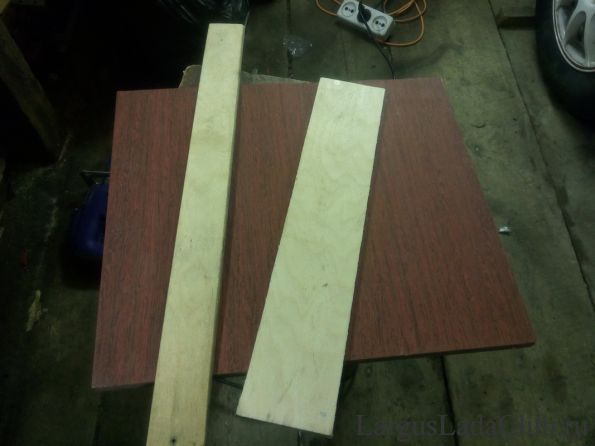 Теперь возникла проблема как установить сабвуфер, так как он слегка шире приямка за вторым рядом сидений. Решено было сделать полку из дсп от старой мебели и кусков фанеры: