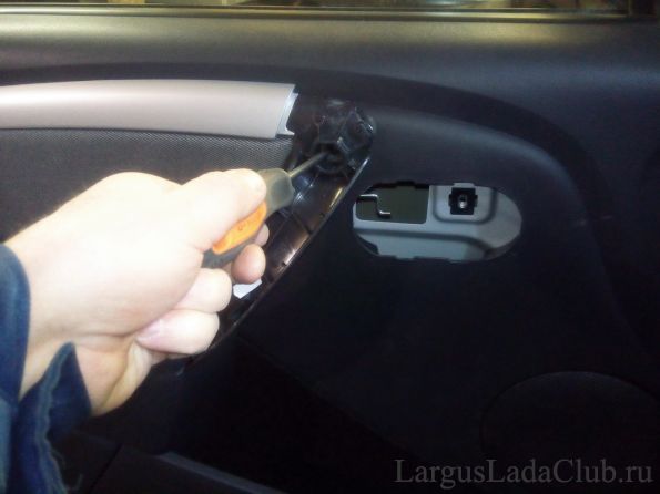 Открутив крепеж, отщелкиваем карту от двери, преодолевая сопротивление автопластилина и фиксаторов.