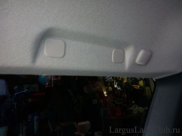 В багажнике пятиместного Ларгуса, стоят заглушки для ручек пассажиров третьего ряда, семиместных комплектаций. Вот я и решил, чтобы отверстия в салоне даром не пропадали и было место для верхней одежды в дальних поездках, прикрутить в этих местах стационарные крючки.