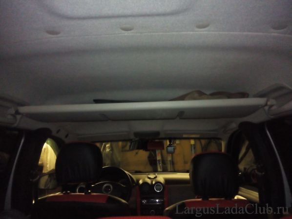 После установки потолочного плафона с очечником:(установка потолочного плафона с очечником), места в нише не стало и возник вопрос, куда убрать все провода. Решено было переместить разветвитель на потолочную полку. Протяжку проводов совместил с протяжкой кабеля на плафон освещения устанавливаемый над вторым рядом сидений:(установка второго потолочного плафона освещения в пятиместку).