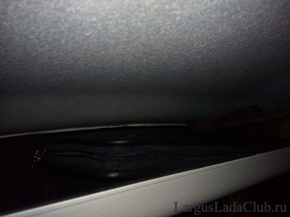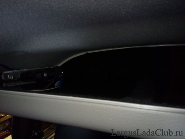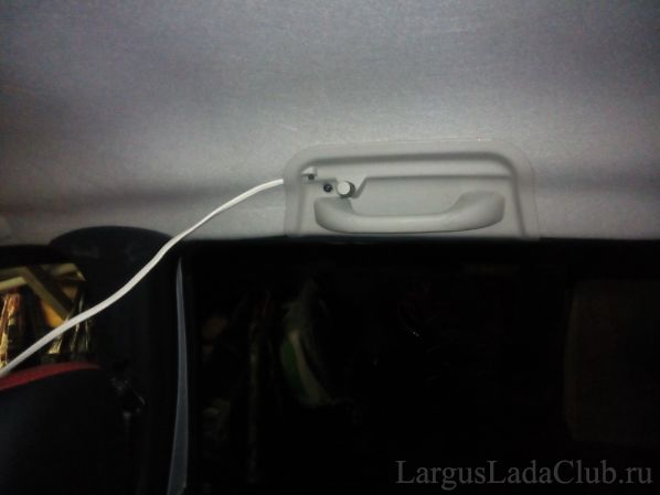 После установки полки, кабель идеально вошел в нишу между полкой и потолочной обивкой, дополнительно его закреплять не пришлось: