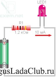 2.Стандартное значение резистора: R1: 1.2 кОм (0.125 Вт)
