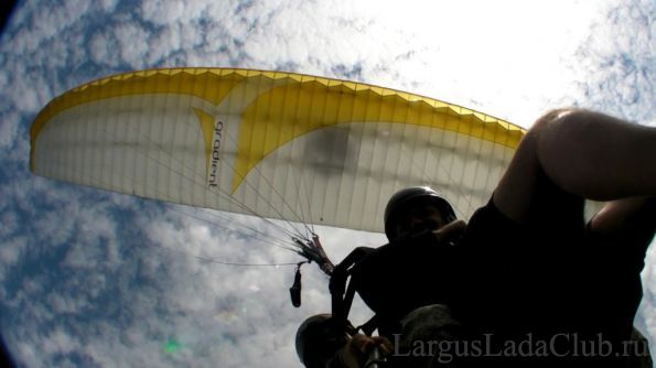 В процессе полета, инструктором, мне было предложено попробовать немного экстрима, на что я сразу согласился. Тогда он передал камеру мне и заложил такие виражи, при которых мы параллельно земле, начали вращаться вокруг параплана. Это я вам скажу испытать стоило, впечатление не забываемое, дух захватывает так, что дышать тяжело становится. Теперь, уже по истечении некоторого времени со дня прыжка, чувства притупились, но тогда меня долго не покидало чувство эйфории. В общем хочу сказать следующее, если представится такая возможность, попробуйте полет обязательно, впечатления купить не возможно, их можно только испытать и они останутся с вами на всю оставшуюся жизнь!