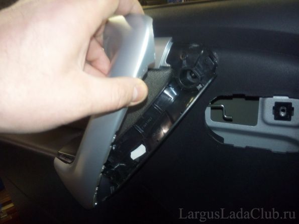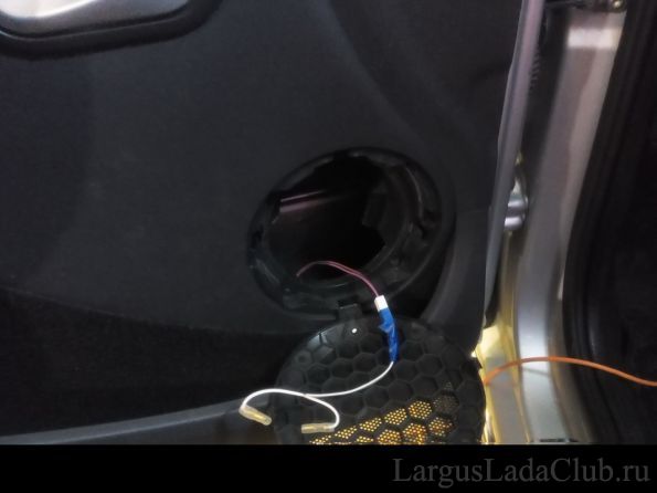 Далее закрываем поверхность двери сплэном и вырезаем отверстие под динамик: