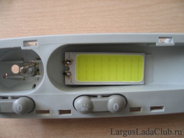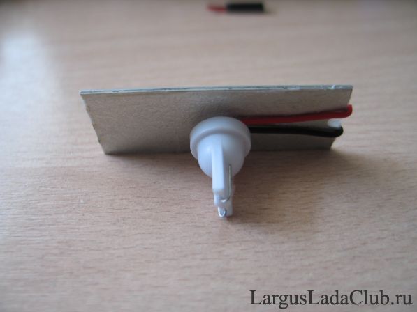 COB платку припаял на жесткие провода вставленные в цоколь Т10