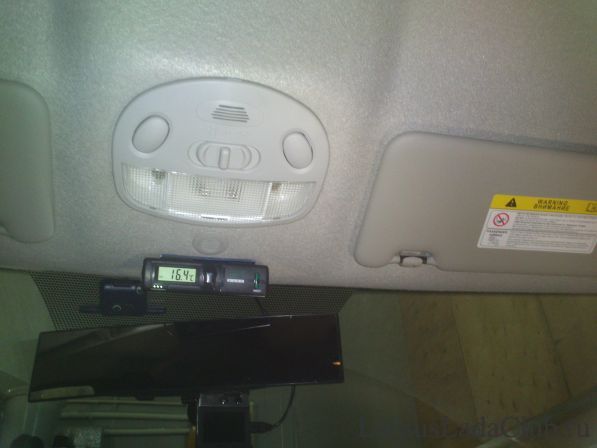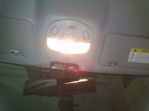 Она закрепляется на место в плафоне, где должен стоять микрофон. Дальше все просто: отрезаем с клеммником и кусочком провода родной плафон, размечаем, вырезаем и спереди и сзади в салоне. Спереди с вырезанным куском обивки вылезет кусок плотной губки. Ее отклеиваем, режем пополам и приклеиваем под обшивкой нового плафона с боков , ото уберет щели т.к. новый плафон немного неплоский. Протягиваем трехжильный провод: от переднего плафона к передней стойке, далее вдоль кузова, за задней боковой дверью протягиваем к заднему плафону. Спереди к остатку проводки припаиваем протянутый провод, плюс параллельно концы около 10 см с фишкой под калиновский плафон (я использовал три маленькие мамы), изолируем. Устанавливаем плафоны на место при этом не забыв их подкличить. И все!