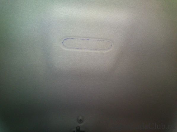 Салон Ларгуса длинный, и поэтому странно, что лампы в с середине салона стоят не во всех пассажирских комплектациях. Вчера, при движении на трассе вечером дети ели мороженное и пожаловались, что не видно капает или нет... Пришлось дать им в руки фонарик. Это и подтолкнуло закончить начатое. Плафон от Калины был куплен уже как две недели назад. Почему он? Потому, что дешевле, симпатичнее, функциональнее. Шаблон из картона для разметки также уже был готов. Крепление его не такое как у нас, пришлось поработать немного мозгами. Сделал из пластмассы вот такую пластину.