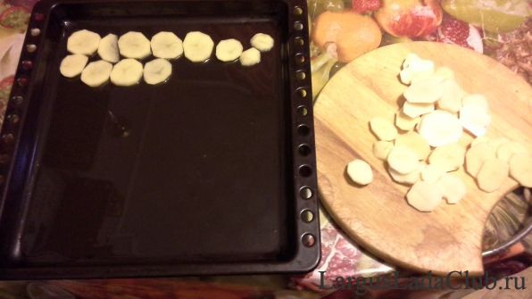 Картофельная запеканка с куриным филе. Чистим картофан и режем его кружочками. Укладываем его на противень, смазаный небольшим колличеством подсолнечным маслом. ![]() Уложив первый слой солим и посыпаем специями. Далее укладываем второй и третий слои картофеля. ![]() Не забываем каждый слой приправить и посолить. Сверху немного смажем картофель майонезом. Куриную грудку режем на тонкие пласьы, а затем на полоски шининой примерно 1,5 см. Складывем полоски куриногь филе в миску, посыпаем приправами, добавляем горчицу и майонез. Все хорошенько перемешиваем. ![]() ![]() ![]() Далее кусочки филе выкладываем на противень поверх картофеля. ![]() Ставим противень в духовку, предварительно разогретую до 200 градусов. Пока наше блюдо готовится в духовке мы пассируем в небольшом колличестве масла репчатый лук, порезанный полукольцами. ![]() И параллельно натераем на крупной теркн сыр твердых сортов. По истечении 20 минут приготовления в духовке досьаем противень. Поверх куриного феле укладываем пассированый лук, а сверху тртый сыр. ![]() ![]() И опять отправляем в духовку на 35 минут, но снижая жар в духовке до 170 градусов. ![]() Приятного аппетита! | ||