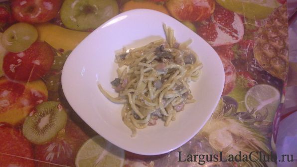 Паста Карбонара по провинциански. Отвариваем макаронные изделия. Параллельно обжариваем лук с белыми грибами. Когда лук с грибами будут почти готовы солим и добавляем мелко нашинкованные сосиски. Откидываем макаронные изделия на дуршлаг. Когда смесь грибов, лука и мелкопорезанных сосисок готовм, то заливаем в сковороду сметану, разведенную с водой в пропорции 3 к 1. Когда вода почти выкипит, выкладываем в сковороду макароны и все перемешиваем. ![]() Приятного аппетита! (Фотографировать не стал, так как не думал, что будет так вкусно...) Редактировалось: 1 раз (Последний: 15 декабря 2015 в 16:14) | ||||||
