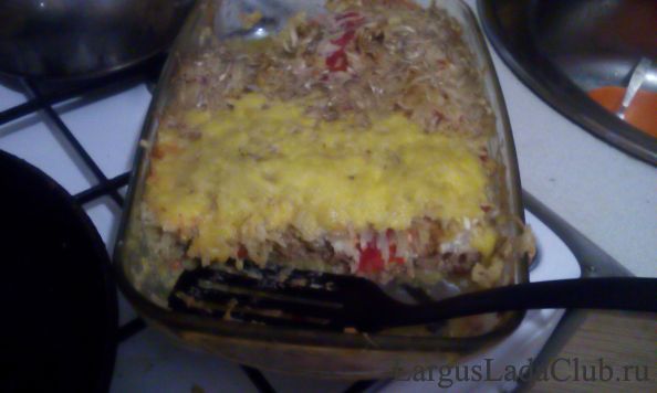 Давно вынашивал данный рецепт в голове и вот решил воплотить его в продуктах. Кортофельная запеканка "Сырная ссуко!" И так нам понадобится: картофель свежий, фарш мясной, томаты в собственном соку, майонез, соль и специи по вкусу. ![]() В форму для запекания (у меня была стеклянная жаропрочная) начинаем на крупной тёрке 2/5 части картофеля. ![]() ![]() Добавляем соль, специи, майонез в небольшом количестве, и все это перемешиваем. ![]() ![]() У вас образуется достаточно большое количество картофельного сока, это сделает запеканку более сочной! ![]() Равномерно распределяет картофель по дну формы для запекания. Сверху выкладываем мясной фарш, предварительно добавив в него соль и другие специи по вкусу. ![]() Далее выкладываем поверх фарша предварительно пассированный репчатый лук. ![]() Теперь натераем на крупной тёрке еще 1/5 картофеля и выкладываем поверх лука.соль и специи по вкусу. Далее добавляем небольшое количество майонеза. ![]() Теперь достаем из банки консервированные томаты в собственном соку и мелко их нарезаем. ![]() И выкладываем их поверх слоя тертого картофеля. ![]() Сверху докладывает последние 2/5 картофеля, натертых на крупной тёрке. (Не забываем посолить и добавить специй по вкусу). ![]() Далее посылаем тертым сыром. У меня сын не захотел сыра, поэтому половина осталась не покрыта сыром. ![]() Ставим форму для запекания в предварительно разогретую духовку. (Я розагревал до 250°С) Первые пол часа я денег температуру на максимуме, а последние полтора часа на минимуме. В итоге запеканка была в духовке два часа. Вот итог: ![]() ![]() Если не посыпать сыром, то наверно надо было укутать верх фальгой. Я этого не делал... Приятного аппетита!!! | ||||