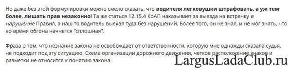 zima108, Эту сноску проверил на себе в 2007 году, типа обгон в конце подъема (ни знака, ни разметки). Видеофиксации тогда не было - второй ГАЕц шел за свидетеля. При разговоре с судьей, на вопрос - может штраф? Она ответила: нам губернатор сказал не штрафовать, а лишать...(тогда на 2 месяца). Я чуть со стула не упал - беспристрастный "суд". Самое обидное, когда нарисовали разметку и установили соответствующие знаки, оказалось пострадал невинно (зона была дальше метров на 200). Беспредел на М5!!! г. Трехгорный, Челябинская обл. - "Знакомый назвал - ЛАДА МАНГУСТ" | ||||