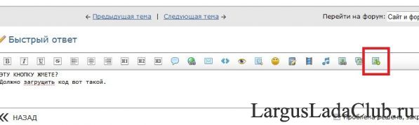 ЭТУ КНОПКУ ЖМЕТЕ? Должно загрущить код вот такой. IMG/upload/forum/ad0eeabce7717cec39e05a327359d3dc.jpg/IMG ![]() Допшоп клубный сервис Лада Ларгус в СПБ Передовиков д 8 А Тел 8921 773 33 04 | ||||
