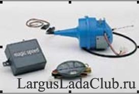 Состоит круиз-контроль из электронного блока управления, сервопривода, управляющего дроссельной заслонкой (может быть вакуумным или электрическим), датчиков контроля скорости, контроллера управления и деталей необходимых для его установки на машину. Как дополнительная опция предусмотрены два варианты выносного интерфейса. Первый можно установить на рулевой колонке, на манер переключателя света фар – вам не придется тянуться до торпеды для изменения режима движения. Второй вариант устанавливается непосредственно на руле, а передача сигнала на изменение параметров осуществляется с помощью ИК-лучей, считываемых приемным устройством, которое монтируется на приборной доске за рулем.