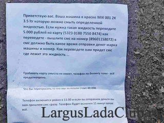 После того как прикрыли махинации с похищением номеров, мошенники придумывают все больше других махинаций. Воронеже неизвестные разрисовали несколько автомобилей краской из аэрозольных баллончиков. На месте преступления ночные хулиганы оставили записку с инструкцией о том, как можно получить чудо-жидкость для смывания зеленой краски. Со слов пострадавших, краска оттирается уайт-спиритом без проблем. Заявления в полицию написаны. ![]() ![]() | ||||