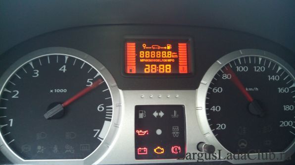 2. второй экран диагностирует работоспособность всех элементов ж/к дисплея, включая их все одновременно. В случае неисправности один из элементов не загорится. Отмечу, что один из элементов слева на табло часов отсутствует у всех машин, т.к. при обоих типах обозначениях времени (12-ти часовом и 24-х часовом) этот элемент не используется;