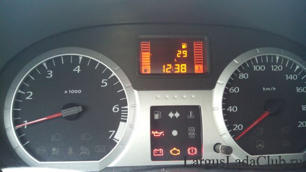 3. третий экран показывает остаток топлива в баке с точностью до литра и предоставляет более точную информацию, нежели стандартный графический столбик. Если присутствует неисправность типа "разомкнутая цепь или короткое замыкание", на дисплей выводятся "- - -". Важно отметить, что датчик уровня топлива, находящийся в бензобаке, не отражает количество топлива, залитого свыше предела в 50 л. Т.е. если вы залили в бензобак 51 и более литров, то БК в диагностическом режиме будет всё-равно показывать только 50 л.;