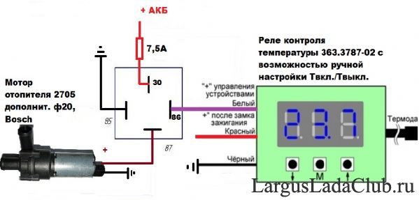 | CrossPlatinum: | | Но там была схема с 5-ти контактным реле! Где помпа так же работала и от АС/DC адаптера во время работы предпускового эл.подгревателя двигателя. |