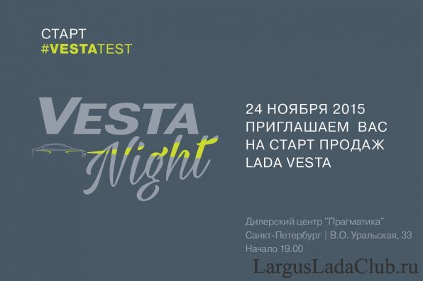 "Здравствуйте! Вы зарегистрировались на мероприятие "Vesta night", посвященное старту продаж LADA Vesta в автоцентре "Интей Лада". Мы будем рады видеть Вас 24 ноября в 19.00 по адресу Коломяжский проспект, дом 30. Для входа на мероприятие, пожалуйста, распечатайте и предъявите приглашение. Вечер обещает позитивное общение, яркую шоу-программу, фуршет, интересные конкурсы с розыгрышем призов и вручение всем гостям памятных подарков и сувениров. Приходите пораньше! Приглашение действительно при нахождении администратором Ваших корректных данных в списке регистрации. С уважением, команда автоцентра "Интей Лада"" Что печатать то?, картинку что Админыч выложил выше? Непонятно. Хотя у меня всё равно принтера нет, если только перерисовать. Редактировалось: 2 раз (Последний: 18 ноября 2015 в 13:55) |
