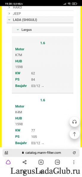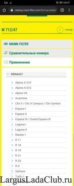 А потому, что если выше прочитаешь пост по установке фильтров, то там написано, кто и что ставил вместо стокового, что бы фильтр был большего объема и фильтрующего элемента. Применимость Mann W75/3 Где он тут не подходит? | Василий_на_Ларгусе: | | Чего-то ни у одной из этих моделей автомобилей не значится двигло К4М |