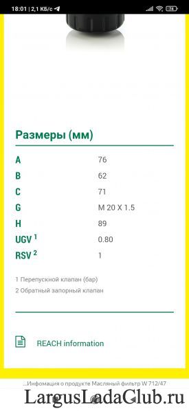 Получается, что да. Вот параметры конвейерного фильтра Ливны, с официального каталога завода Вопрос по клапану остаётся открытым. О том что давление у всех клапанов разное - только буквы в интернете, по всяким бложикам и форумам. По ка остаюсь при своём. Ну или допускаю, что они могут отличаться как бензин vs дизель. А по маркам автомобилей только габаритными размерами самого фильтра. RS0Y5-42-02D RS045-A2-L56