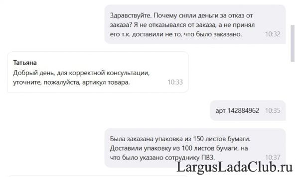 Извините, наспамлю. Но я слегонца прифигел, от принципов работы площадки Wildberries. Ну и может предупрежу кого от проблем. Кратко, заказывал упаковку бумаги для принтера на 150 листов, в ПВЗ вынесли упаковку на 100 листов. Я конечно не стал принимать указав сотруднику, что заказывал другую упаковку. Вечером списалось 100р. за якобы отказ. Отказ от того, что мне не привезли. При обращении в поддержку Wildberries, получил ответ со смыслом "обещаем, что ваш вопрос будет когда-нибудь решен". Ниже скрины переписки то ли с ботами, то ли с операторами, то ли вперемешку. Окошко с чатом короткое, потому получилась такая нарезка. Наше дело правое, враг будет разбит, победа будет за нами! -=Москва-Краснодар-Омск=- |