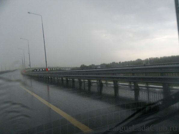 На следующий день проснулись, когда ещё и семи утра не было. Соседи на VW уже уехали. Мы неспешно умылись, позавтракали, загрузились в машину и поехали дальше. На подъезде к Ростову небо начало стремительно темнеть и лупанул дождь. Когда мы въехали на объездную дорогу вокруг Аксая и Ростова дождь лил как из ведра. И при знаке «Автомагистраль» и «110 км/ч» пришлось ехать 60 км/ч, больше было как-то стрёмно, вода потоками лилась по проезжей части. Обидно, блин…
