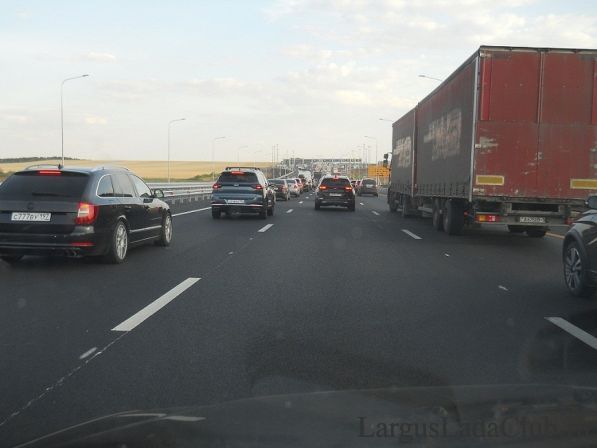 Освободить номер нужно было в 12-00, но собраться получилось даже чуть раньше и в 11-30 мы покинули наш пансионат. Первые пробки начались прямо в Витязеве и препятствовали нашему дальнейшему движению до тех пор, пока мы не добрались до объездной вокруг Краснодара. Получилось, что на проезд расстояния в 220 км нам потребовалось 6 часов, вместо 4-х по навигатору! Самые длинные пробки были вокруг Славянска (где строят новую дорогу) и после Крымска (на том же ж/д переезде). Крымские радиолюбители сказали мне по рации, что эту пробку объехать никак не получится. На стояние в пробках у нас было истрачено 2 часа, которых нам не хватило в дальнейшем для устройства более желательного ночлега. И лишь только выскочив на Краснодарскую объездную мы поехали с нормальной скоростью…