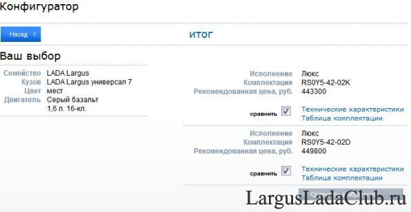 Lada Largus конфигуратор